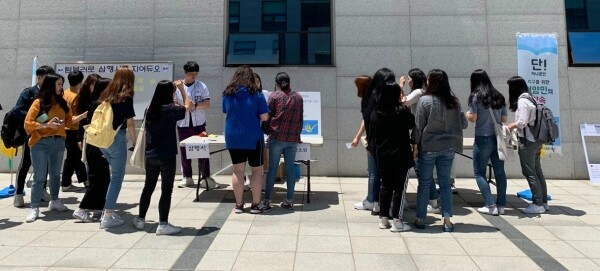 이날 캠페인은 텀블러 삼행시 짓기, 일회용 컵 사용에 대한 심각성에 대한 글을 남기는 등 친환경 의식을 높일 수 있는 간단한 활동을 진행한 학생에게 텀블러를 무료로 제공하는 방법으로 진행됐다.