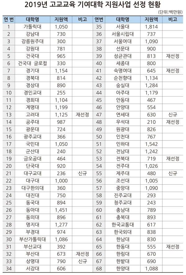 계속지원대학 등 68개교 지원 확정…올해 예산 559억 4000만 원