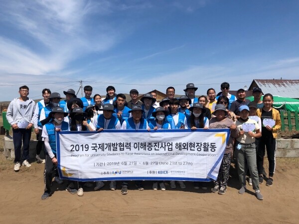[대학저널 임지연 기자] 인천대학교(총장 조동성)는 '2019년도 대학교 국제개발협력 이해증진사업'의 일환으로 2018년에 이어 2019년 6월 21일부터 27일 2회 연속 몽골 울란바토르와 다르한에 해외봉사단을 파견했다.