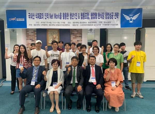 [대학저널 신영경 기자] 청운대학교(총장 이우종) 호텔조리식당경영학과는 지난 5일부터 19일까지 ‘국내산 식재료와 인적 네트워크를 활용한 청년1인 & 협동조합, 협업형 한식당 창업성공 전략’을 주제로 호텔관광대학에서 교육을 진행했다.