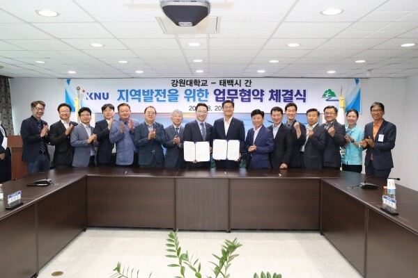 [대학저널 이승환 기자] 강원대학교(총장 김헌영)는 20일 태백시청 2층 소회의실에서 태백시(시장 류태호)와「지역사회 발전 및 상호 교류증진을 위한 업무협약」을 체결했다.