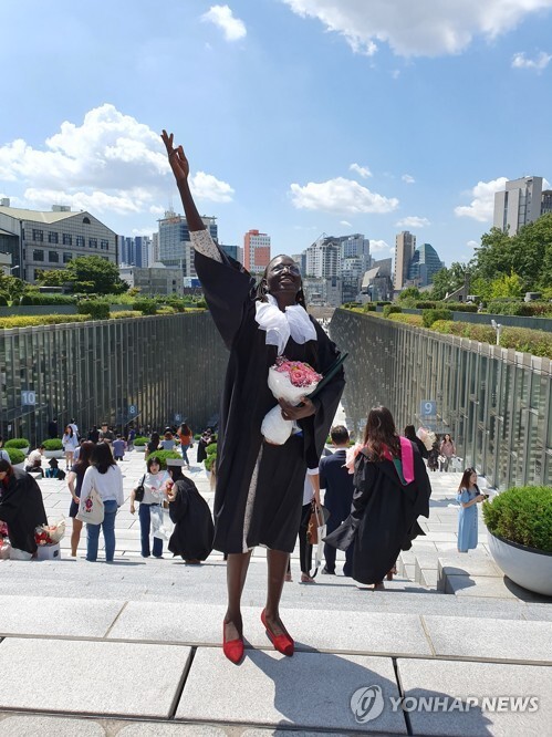 1일 이태석사랑나눔재단에 따르면 남수단에서 2013년 입국한 아순타(25)씨는 지난달 30일 이화여자대학교의 졸업가운을 입었다.