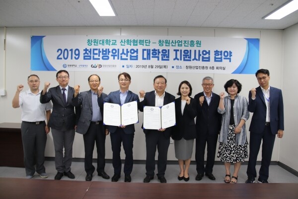 [대학저널 임지연 기자] 창원대학교가 2일 창원산업진흥원과 ‘2019 첨단방위산업대학원 지원사업’ 업무협약을 체결했다.