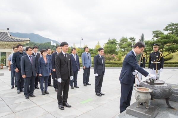 [대학저널 이승환 기자] 전북대학교 김동원 총장을 비롯한 보직자들이 추석을 앞둔 4일 임실 호국원을 찾아 순국선열에 참배했다.