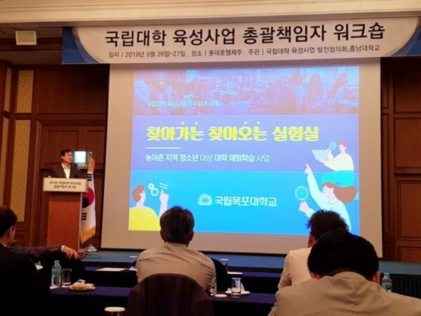 이에 따라 목포대 MNU국립대학육성사업단은 국립대학육성사업 발전협의회 주최로 지난 26일 제주 롯데호텔에서 열린 국립대학 육성사업 총괄책임자 워크숍에서 우수 사업성과에 대해 발표했다.