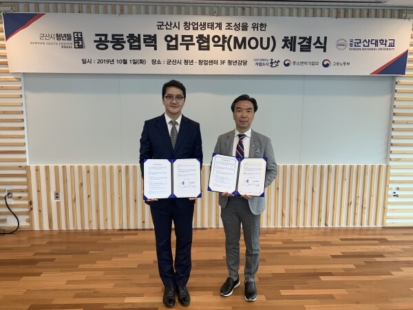 [대학저널 이승환 기자] 군산대학교 지식재산교육선도대학사업단(단장 정보통신공학부 이영석 교수)은 1일 군산시 청년‧창업센터(센터장 안태욱)와 상호협력을 위한 업무협약을 체결하였다.