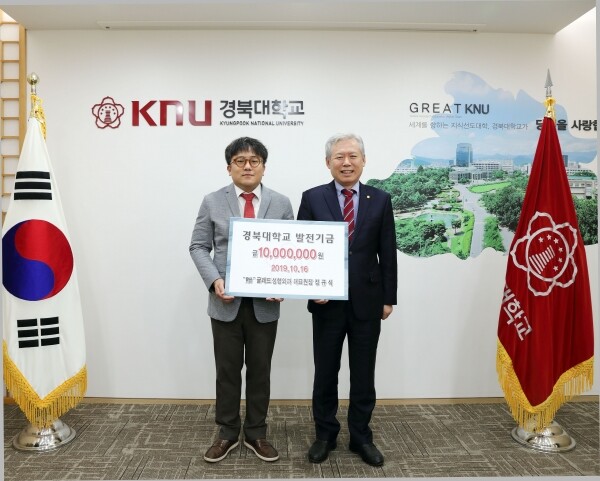 [대학저널 임지연 기자] 정규식 글래드성형외과 대표원장은 16일 경북대학교 김상동 총장을 방문해 발전기금 1,000만 원을 전달했다. 전달된 발전기금은 ‘성형외과학교실기금’으로 적립돼 경북대 의과대학 성형외과학교실 발전을 위해 사용될 예정이다.
