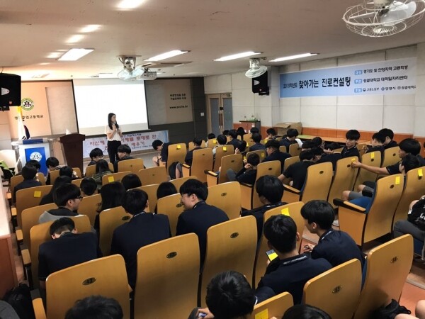 대학일자리센터는 지난 5월 23일 평촌공업고등학교에서 '“자기이해를 바탕으로 한 진로 로드맵 설계' 프로그램을, 9월 5일에는 글로벌통상고등학교에서는 '직장예절' 프로그램을 진행했다.