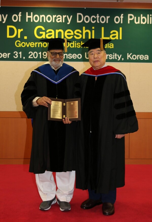 [대학저널 이승환 기자] 한서대학교(총장 함기선)는 31일 연암도서관 국제회의장에서 인도 오디사(Odisha)주 가네시 랄(Ganeshi Lal) 주지사에게 명예 행정학박사 학위를 수여했다.