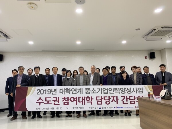 이번 간담회는 중소벤처기업부의 재정지원사업인 '2019년 대학연계 중소기업인력양성사업'의 성과제고 및 중간점검 차원에서 수도권 참여대학을 중심으로 상호간에 프로그램 진행현황을 공유하고 협력방안을 모색하여 본 사업을 활성화하고자 마련됐다..