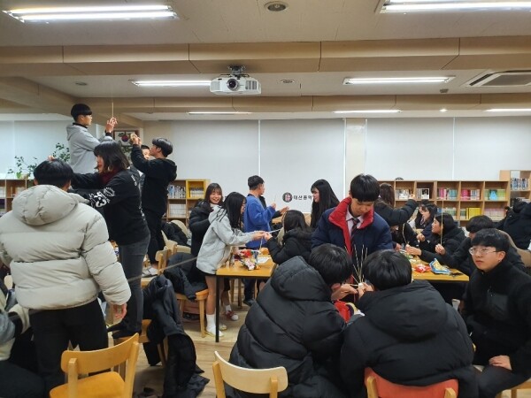 특강에 이어 대산중 학생들은 대학생과 팀을 이뤄 진로 멘토링 시간을 가졌다. 마시멜로 게임을 통해 제한적인 상황에서 최고의 성과를 만드는 등 창의체험 활동을 펼쳤다.