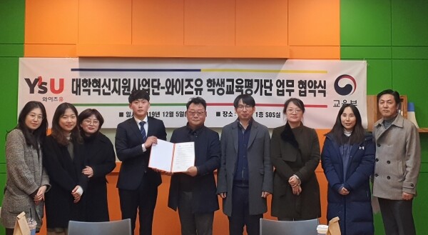 [대학저널 임지연 기자] 와이즈유(영산대학교, 총장 부구욱) 대학혁신지원사업단(단장 조혁규)은 학생교육평가단(대표 정민준)과 교육평가와 홍보 분야 등에서 대학혁신지원사업의 성공적 추진을 위한 협약을 체결했다.