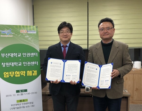 [대학저널 이승환 기자] 창원대학교(총장 이호영) 인권센터와 부산대학교(총장 전호환) 인권센터는 최근 부산대에서 ‘대학 구성원의 인권보장과 성평등한 대학문화 조성’을 위한 업무협약을 체결했다.