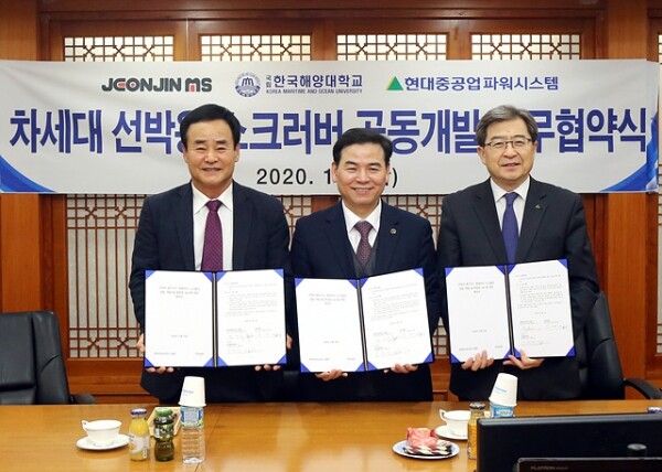 [대학저널 임지연 기자] 한국해양대학교(총장 도덕희)는 7일 대학본부 3층 정책회의실에서 전진MS(주)·현대중공업파워시스템(주)와 ‘차세대 선박용 스크러버 공동개발’에 대한 업무협약을 체결했다.