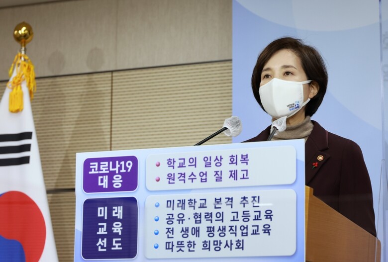 유 부총리는 "코로나19로 더욱 심화된 교육 격차의 문제를 비롯해 지역사회 집단감염 위험 속에서 학교 안전을 지키는 문제, 코로나19가 앞당긴 급격한 변화 속에서 미래교육으로 적극적으로 전환해야 하는 등 많은 과제들이 남겨져 있다"면서 "2021년 한 해 동안 학교의 일상 회복과 미래교육의 토대 구축이라는 두 가지 핵심정책 방향을 세우고 과제를 해결해 나가겠다"고 강조했다.