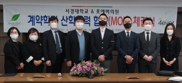 [대학저널 이승환 기자] 서경대학교(총장 최영철)는 14일 교내 본관 3층 대회의실에서 블리비의원, 포에버의원과 ‘채용조건형 계약학과’ 설치를 위한 산학협력 협약(MOU)을 체결했다.
