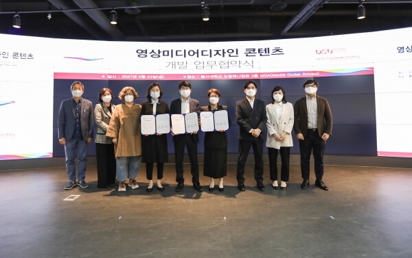 [대학저널 오혜민 기자] 동서대학교(총장 장제국) 디자인대학과 아시아미래디자인연구소(부설)는 지난 23일 동서대 뉴밀레니엄관 3층 MOA(Media Outlet Annex)에서 영화의전당과 영상미디어디자인 콘텐츠 교류를 통한 산학협력체계 구축을 위해 업무협약을 체결했다.