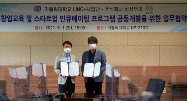 [대학저널 오혜민 기자] 가톨릭대학교 산학협력 선도대학(LINC+) 사업단은 지난 1일 중장년 창업·재취업교육 전문기업 상상우리와 창업교육 및 스타트업 인큐베이팅 프로그램 공동 개발을 위한 업무협약을 체결했다.