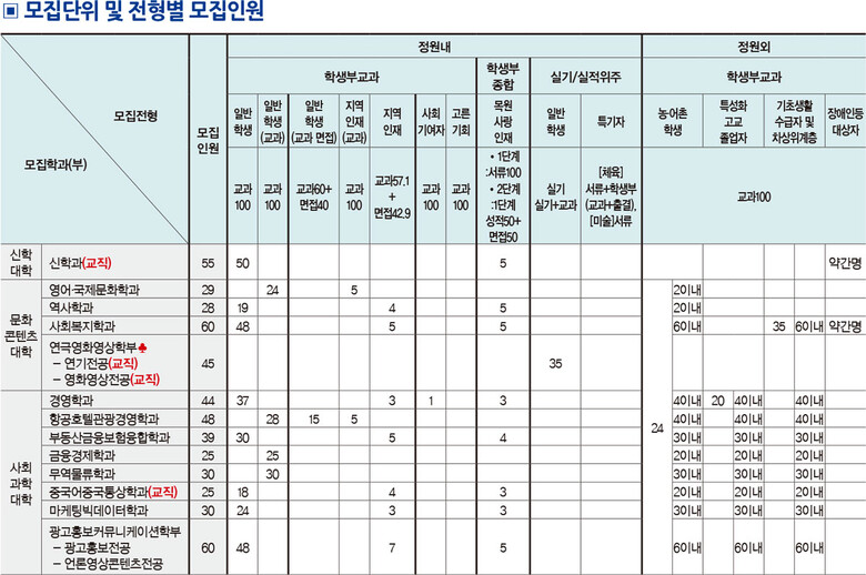 학생부교과 일반학생전형 사회복지학과 및 사범계열 학과(국어교육과, 영어교육과, 수학교육과, 유아교육과)들은 성적 반영 비율이 학생부 80%+면접 20%이지만, 실질반영비율이 학생부 57.1%+면접 42.9%로 면접에 대한 비율이 높으므로 면접을 사전에 철저히 준비하는 것도 수시 지원전략이라고 할 수 있다.