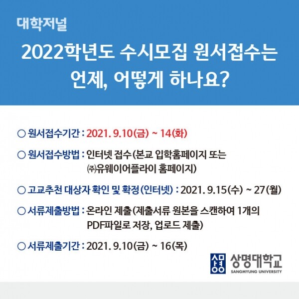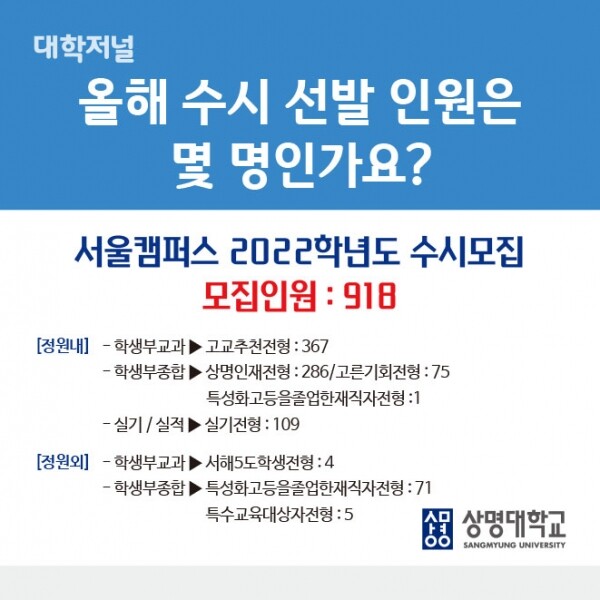 [카드뉴스] 상명대학교(서울) 2022 수시모집