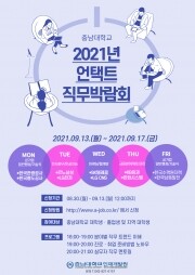 [대학저널 오혜민 기자] 충남대학교(총장 이진숙)는 인재개발원이 지역청년들을 위해 오는 13~17일 ‘2021년 언택트 직무박람회’를 개최한다고 6일 밝혔다.