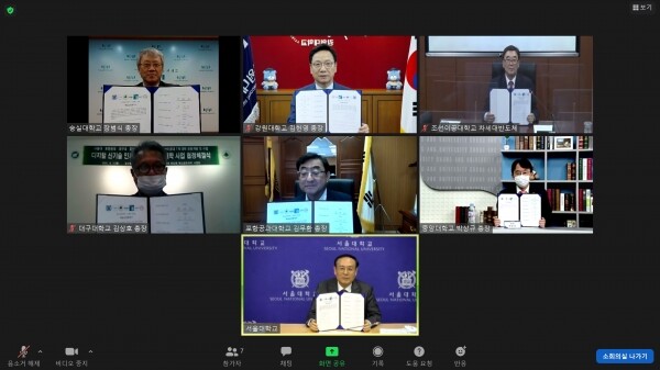 이날 협약식은 코로나19 상황을 고려해 온라인 방식으로 진행됐으며, 각 대학 총장 및 부총장, 사업단장 등이 참석했다.