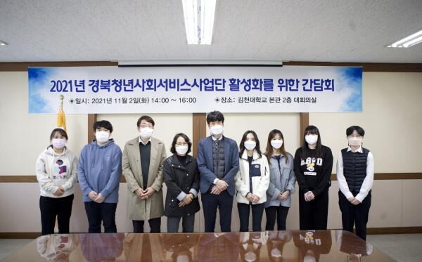 [대학저널 임지연 기자] 김천대학교(총장 윤옥현)는 산학협력단 경북청년사회서비스사업단이 지난 2일 보건복지부와 경북도의 지원을 받아 운영 중인 경북청년사회서비스사업 간담회를 가졌다고 5일 밝혔다.