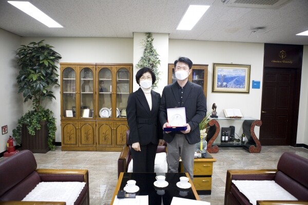 [대학저널 오혜민 기자] 김천대학교(총장 윤옥현)는 지난 8일 심철범 화성이엔에이 대표에게 대학발전 홍보부문 유공자 감사패를 전달했다고 9일 밝혔다.
