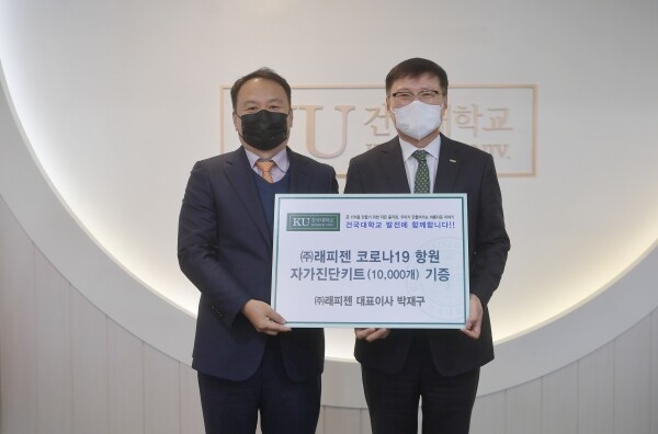 [대학저널 임지연 기자] 건국대학교(총장 전영재)는 의료용품제조업체인 래피젠이 신종 코로나바이러스 감염증(코로나19) 항원 자가진단키트 1만개를 기부했다고 10일 밝혔다.