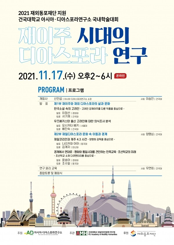 이번 행사는 재외동포재단 후원으로 건국대 아시아·디아스포라연구소가 주최하고, 건국대 모빌리티인문학 연구원이 주관한다.