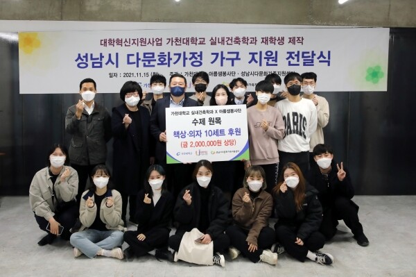 가천대에 따르면 이 프로젝트는 성남시다문화가족지원센터와 협력해 진행한 것으로, 15~16일 성남지역에 사는 베트남과 캄보디아, 나이지리아 등 다문화가정 10세대에 전달된다. 가구 재료비 약 200만원은 가천대 아름샘봉사단이 지원했다.