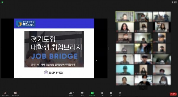 이헌준 경기도브리지사업단 파트장은 “‘2021년 경기도형 대학생 취업브리지’에 많은 지역청년이 관심을 가지고 참여해줬다”며 “한신대와 경기도일자리재단이 준비한 교육과정이 사회에 첫발을 내딛는 참여 학생들에게 실제적인 도움이 되도록 사업에 임하겠다”고 말했다.