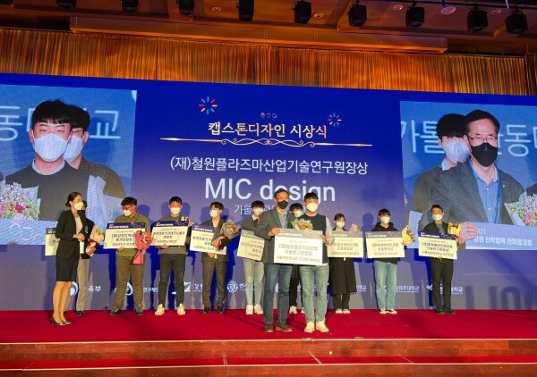 가톨릭관동대는 캡스톤디자인분야에서 ‘여기있대!팀’(소프트웨어학과 홍원산 외 2명, 지도교수 안희학)의 ‘압력센서를 이용한 주차장 관리 시스템’과 ‘MIC Design팀’(경찰행정학과 문명기 외 2명, 지도교수 문준섭)의 ‘야간 안전 삼각대(N.S.T)’로 철원플라즈마산업기술연구원장 표창을 받았다.