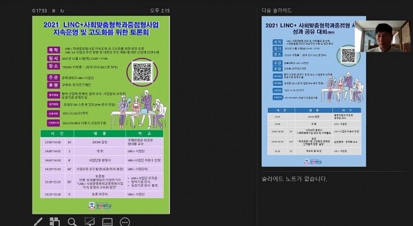[대학저널 백두산 기자] 경복대학교는 LINC+사업단이 지난 12일 ‘2021 사회맞춤형 LINC+사업 성과공유대회’를 개최했다고 17일 밝혔다. 이번 성과공유대회는 코로나19 확산을 고려해 온라인으로 진행됐다.