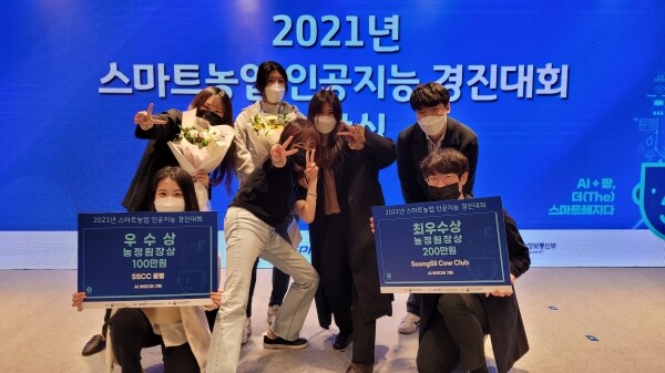 [대학저널 오혜민 기자] 숭실대학교(총장 장범식)는 컴퓨터 중앙동아리 SSCC의 ‘Soongsil Cow Club’팀과 ‘SSCC꿀벌’팀이 스마트농업분야 인공지능 모델을 개발·발굴하기 위해 열린 2021년 스마트농업 인공지능(AI) 경진대회에서 각각 최우수상, 우수상을 수상했다고 18일 밝혔다.