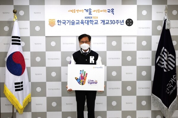 [대학저널 임지연 기자] 이성기 한국기술교육대학교 총장이 인종차별과 혐오범죄에 반대하기 위한 글로벌 캠페인 리브 투게더(Live Together) 챌린지에 동참했다.