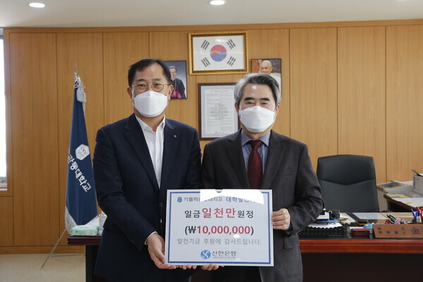 한편 신한은행은 지난 2017년부터 가톨릭관동대에 매년 1000만 원의 발전기금을 기부하고 있다.