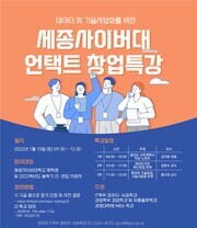 세종사이버대에 따르면 오는 15일 열리는 창업특강은 ▲끌리는 사업계획서 작성 노하우 ▲데이터 기반 혁신 창업전략 ▲특허와 기술창업, 기술 사업화 전략 등 3가지 주제로 실시된다.