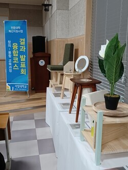 발표회는 융합코스 교육과정을 웹페이지에 담아 홍보하고, 영어 프레젠테이션과 업사이클링 가구 전시 등으로 진행됐다.