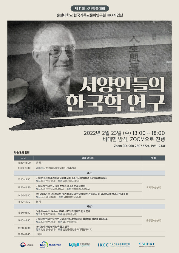 [대학저널 황혜원 기자] 숭실대학교 한국기독교문화연구원 HK+사업단이 오는 23일 ‘서양인들의 한국학 연구’를 주제로 제11회 국내학술대회를 온라인(ZOOM)으로 연다.