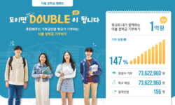 더블장학금 모금캠페인은 ‘학교와 내가 함께하는 기부’를 슬로건으로 내세우며, 후원자가 기부한 금액만큼 학교에서 매칭 기부하는 방식으로 이뤄졌다.