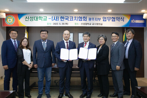 신성대는 지난 26일 한국코치협회 광주지부와 코칭에 대한 정보교류, 학생 코칭 활동 상담에 대해 공동 협력하고자 업무협약을 체결했다고 31일 밝혔다.