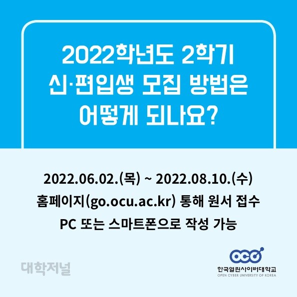 [카드뉴스] 한국열린사이버대 2022학년도 2학기 신·편입생 모집