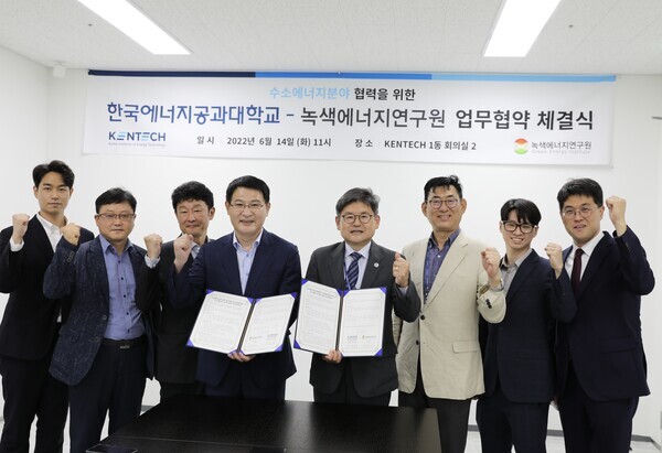 [대학저널 오혜민 기자] 한국에너지공대가 14일 녹색에너지연구원과 수소에너지분야 협력을 위한 업무협약을 체결했다.