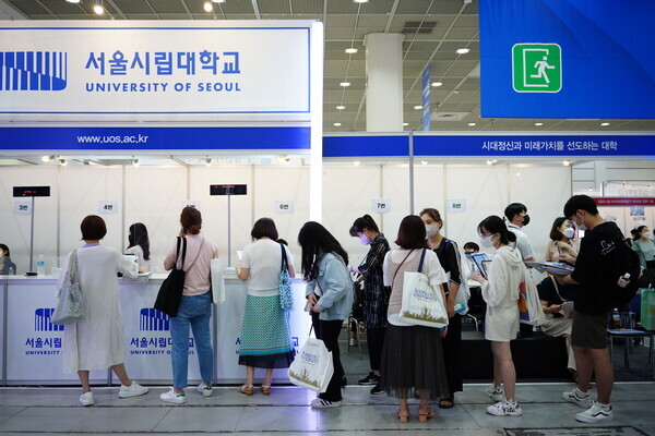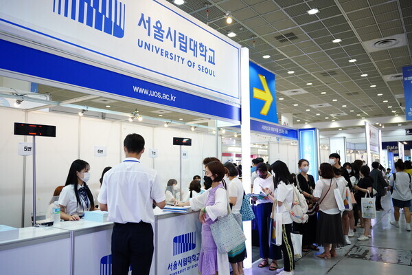[대학저널 황혜원 기자] 한국대학교육협의회가 주최하는 '2023학년도 수시 입학정보박람회'(이하 수시박람회)가 20일부터 23일까지 서울 삼성동 코엑스에서 열린다. 이번 수시박람회에는 전국 149개 대학이 참가한다. 현재 수험생들이 대학부스에서 입시 상담을 진행하고 있다. 사진은 서울시립대 상담부스 모습.